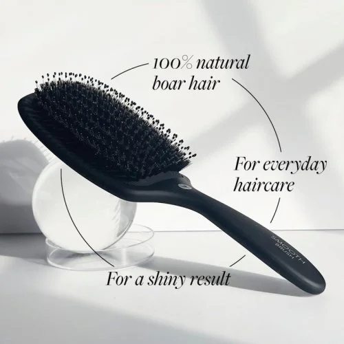 Suteikite plaukams natūralų žvilgesį ir šilkinį glotnumą su 100 % natūralių šerno šerių šepečiu. Jis tolygiai paskirsto aliejus, mažina pasišiaušimą ir švelniai stimuliuoja galvos odą.